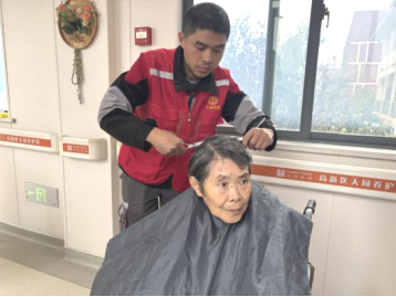 理发区里,志愿者们耐心细致地为老人修剪头发、刮净胡须,手法娴熟又温柔,让老人们容光焕发;护理台前,志愿者们蹲下身,小心翼翼地为老人修剪指甲,叮嘱日常护理注意事项;休息区里,志愿者们围坐在老人身边,拉家常、话冷暖,倾听他们的过往故事,爽朗的笑声在养护院的走廊里久久回荡。