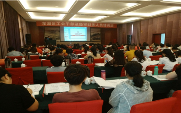 7月12日,2018年东湖区工会干部及经审财务人员培训班在南昌翠林高尔夫假日酒店正式开班。东湖区总工会主席欧阳桃花出席并作开班动员讲话。培训为期两天,全区各镇、街道(管理处)及区直属基层工会的工会干部及经审财务人员近130人参加了培训。