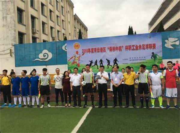 6月5日,由青云谱区总工会、青云谱区教科体局联合举办的“2018年度青云谱区‘保利中航’杯职工业余足球联赛”在洪都小学足球场正式开赛。区委常委、组织部长熊辉,副区长滕作鹏及区总工会、区教科体局、三店街办有关负责同志出席开幕式。